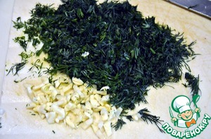 Чеснок и укроп помыть и мелко порезать.