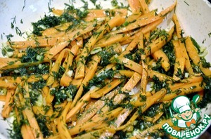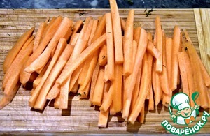Морковь нарезать соломкой.