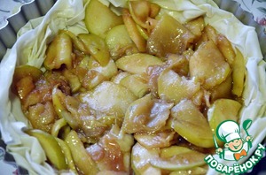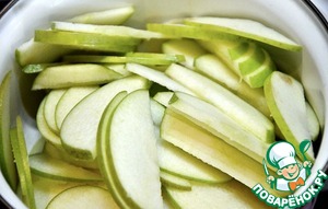 Яблоки нарезать тонкими дольками и сбрызнуть лимонным соком.