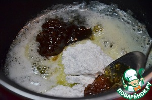 Довести до кипения и добавить яблоки, варить, пока яблоки не станут мягкими и не карамелизуются. Добавить 1 ст. л. коньяка и остудить.