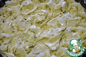 На дно формы выкладываем листа 3-4, как основу, оставляя бортики. -