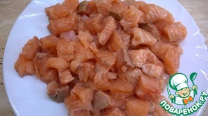 - Лосось ( форель или семга. Порезать на кусочки.) — 400 г