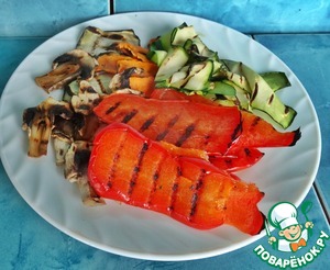 На пикнике у вас наверняка будут жаренные на решётке свежие овощи. Можно дома пожарить на сковороде -гриль те овощи, которые у вас есть в наличии.