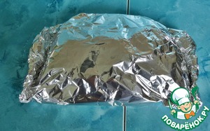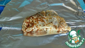 На лист фольги положить блины в два этажа.