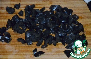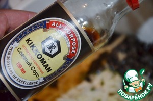 Смешаем сыр, розмарин, оливки, добавим соевый соус Kikkoman.