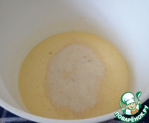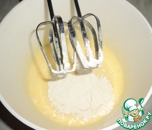 Теперь возвращаемся к тесту. Добавляем муку и перемешиваем.