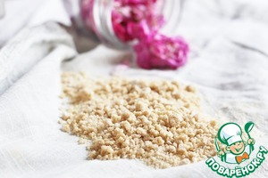 Сахар у меня коричневый, я покупаю кусковой, затем просто его накрываю и разбиваю молоточком)) Всё же коричневый полезней...