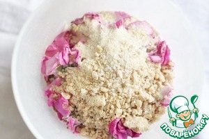 Лепестки засыпать сахаром и добавить немного лимонной кислоты. Далее кому как нравится: перетереть пальцами, перебить блендером/мясорубкой и т. д. Совсем кашу я не люблю делать, мне нравится когда в чашке плавают кусочки листиков.