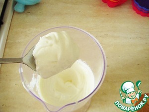 Сметану слегка взбиваем (секунд 30) и добавляем сахар и ванилин - взбиваем, чтобы сметанка слегка загустела, стала похожа на крем и сахар полностью к этому моменту растворится.