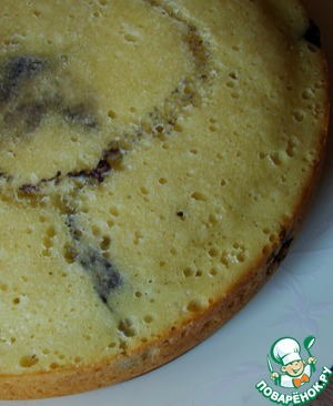 ВОт так кекс выглядит сверху. Не страшно, что беленький сверху, как и вся выпечка из мультиварки. Его можно присыпать сахарной пудрой, например.