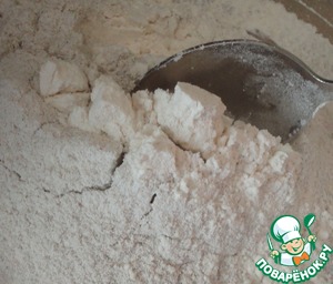 Быстро высыпаем муку и вымешиваем до образования хорошо заварившегося комка.
