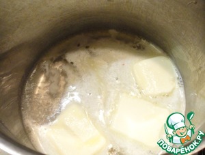 Добавляем сливочное масло, кипятим помешивая до растворения масла.