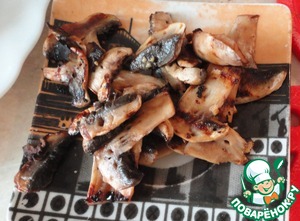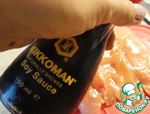 Также сбрызгиваем соевым соусом. Курицу и грибы оставляем мариноваться минут на 10-15.