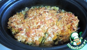 - Масло растительное (1 ст.л. - для смазывания формы, 2 ст.л. для жарки мяса, 2 ст.л. - для жарки лука ) — 5 ст. л.