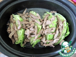 Выкладываем мясо на капусту.