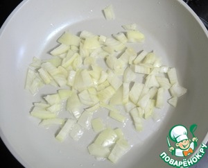 Режем лук, обжариваем его в масле до прозрачности.