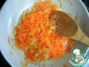 Добавляем к луку морковь. Обжариваем еще минуту.