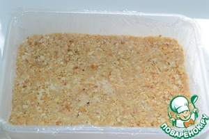 В форму выложить слой из печенья, хорошенько примять и выровнять.