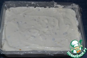 Сверху выложить творожно-желатиновую массу. Убрать в холодильник часа на два.
