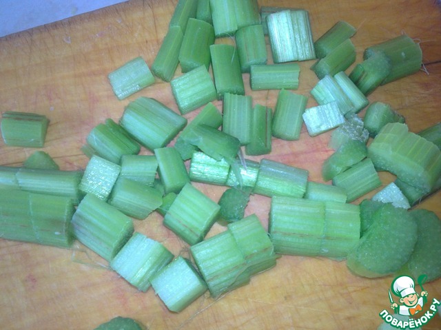Ревень нарезать кубиками, яблоко дольками (каюсь яблоко забыла сфотографировать)