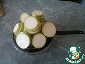 Моем, чистим, нарезаем кружками кабачки шириной в 1 см.