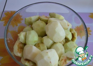Яблоки очистить и порезать на 4 части (в оригинале крупно, как только возможно)
