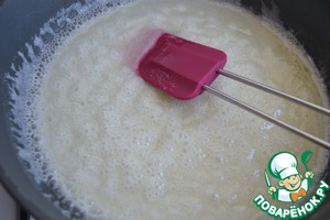 Прогреваем смесь до закипания, и обязательно дожидаемся, когда она начнет становиться такой золотистой. Я поспешила чуток.