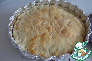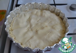 Накрыть начинку тестом, хорошо прижимая края ( осторожно пальцы – карамель еще не остыла). Вилкой накалываем тесто.