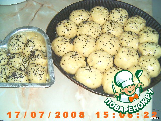 И кладем на середину формы. Кладем шарики по кругу, делаем "ромашку".