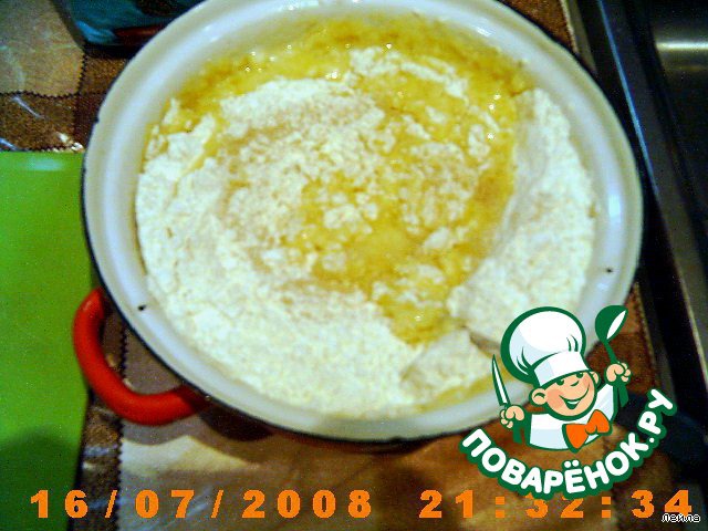 Муку, и все хорошо замешиваем. Чтобы тесто отставало от рук, налейте 1 ст. л. растительного масла