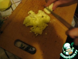 Яблоки очищаем от кожуры и семян, нарезаем кубиками. Добавляем яблоки в тесто, молотую корицу и перемешиваем.