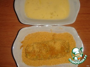 Когда немного остынут, достать из холодильника, каждую колбаску обмакивать в яйцо, затем в панировку и жарить до румяной корочки.