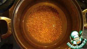 Нашу крупу моем, и ставим на огонь. варим до готовности. Что бы было быстрее её можно отварить заранее. тогда приготовление займет не более 40минут