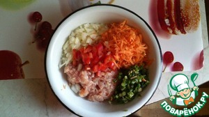 • Пересыпаем все в тарелочку и добавляем наш фарш