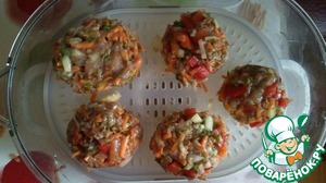 Мокрыми руками формируем котлетки и выкладываем в нашу пароварочку.