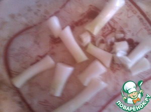 • Очистить картофель, порезать прямоугольничками, поставить варить на 15 минут (по их истечению добавим капусту, морковь и лук).