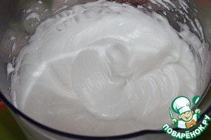 Белки взбить с щепоткой соли до пиков. Продолжая взбивать, добавить сахар - примерно 1/4-1/3 стакана на 1 белок.