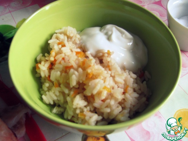 После того, как рис сварился, перекладываем его в миску, куда добавляем йогурт (я стараюсь редко использовать майонез, но если кому-то йогурт несладкий не нравится, можете добавить и другой соус). Перемешать - это и есть начинка для трески