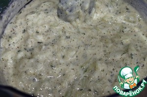 Натертый кабачок хорошо отжать и смешать с яйцами и остальными ингредиентами для коржа. Если тесто получилось жидковатым, добавить еще муки.
