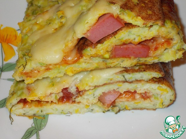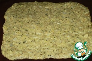 Выложить кабачковую массу прямоугольником - ровным слоем примерно 1.5 см.