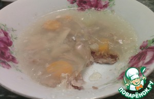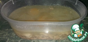 Для того, чтобы проверить застыл ли бы мой холодец без желатина, я отлила немного бульона в чашечку и.. он застыл без проблем!!!