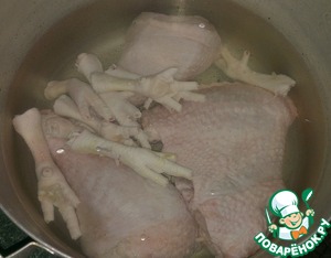 На "поварёнке" не нашла такого рецепта, хочу предложить такой мясной вариант на холодец. Надеюсь, что многим понравится. Получается очень нежный, полезный холодчик.