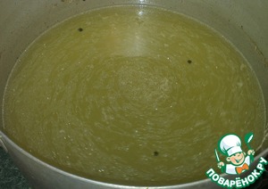 А бульон обильно солим (слегка пересолив, это не будет вредно и совсем не будет чувствоваться, так как мясо у нас не соленое). Провариваем до закипания