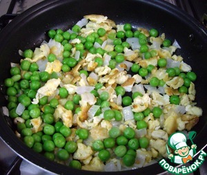 Зеленый горошек (мы отварили замороженный) добавляем.
