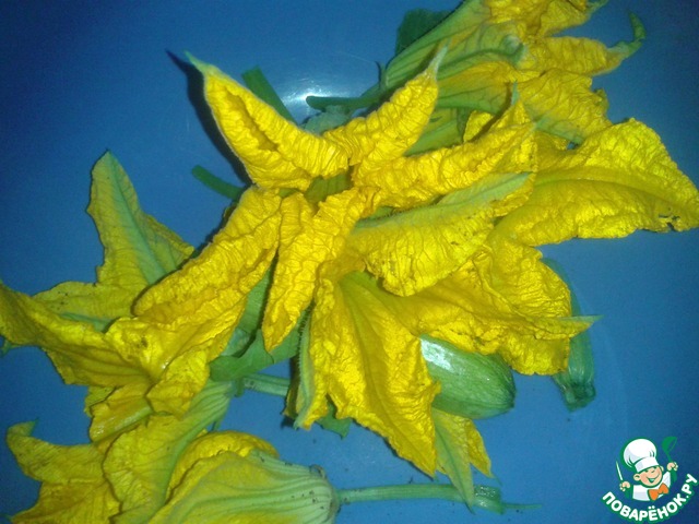 - Цветки (кабачков, можно использовать 1-2 молоооденьких кабачка.) — 2 горст.