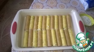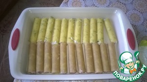 Перемешиваем начиненные каннеллони в шахматном порядке.