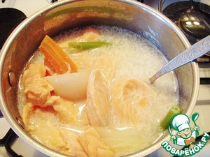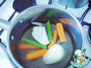 • Ставим вариться бульон для рыбы - в него нужно отправить морковку, лук и сельдерей. Отвариваем картофель до готовности.