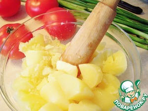 • Разминаем картошку со сливочным маслом и солью до однородного пюре