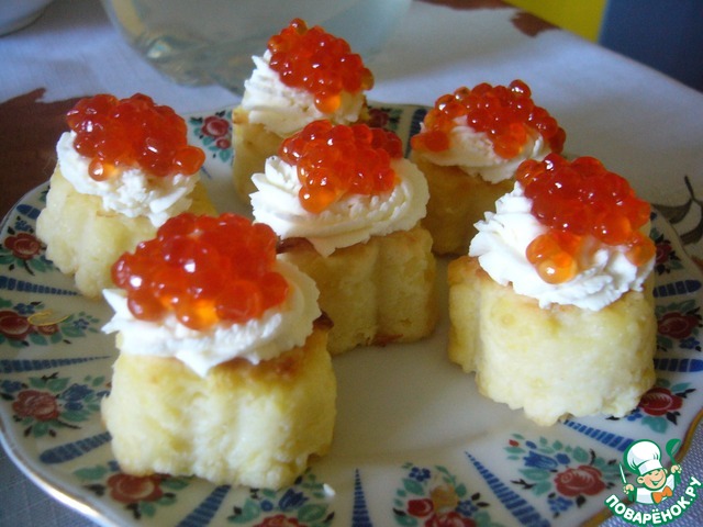 Картофельные мини-кексы со сливочным сыром и икрой. Маленькие, буквально на один укус кексы, вкусная и нарядная закуска.