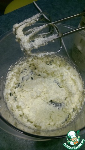 Добавьте творог и еще раз хорошо взбейте.